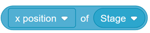 In the current version 3.0 the block does not have the "x position" possibility on the left side when the Stage is selected on the right. Instead you will probably see it as shown below, or some other combination.