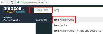 After you created an account, log in at https://www.amazon.ca/, then search as shown here in: select "Kindle Store" from the drop0down, type the word "free" and select the results.